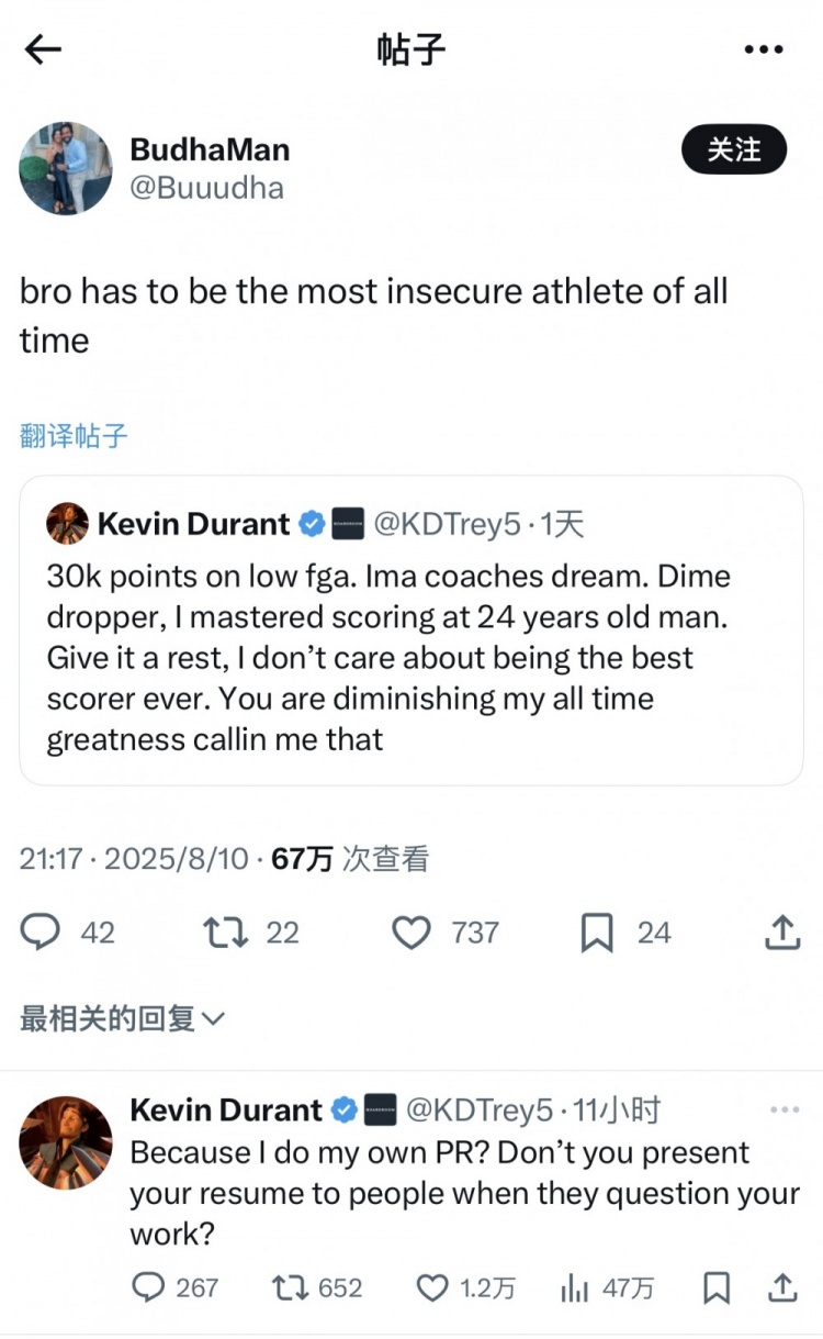 杜兰特:“我用更少的出手拿下30000分,我是教练的梦想。Dime Dropper,我24岁时就已经掌握了得分技巧。别再说了。我不在乎成为历史最佳得分手。你们这样称呼我是在贬低我的伟大。”